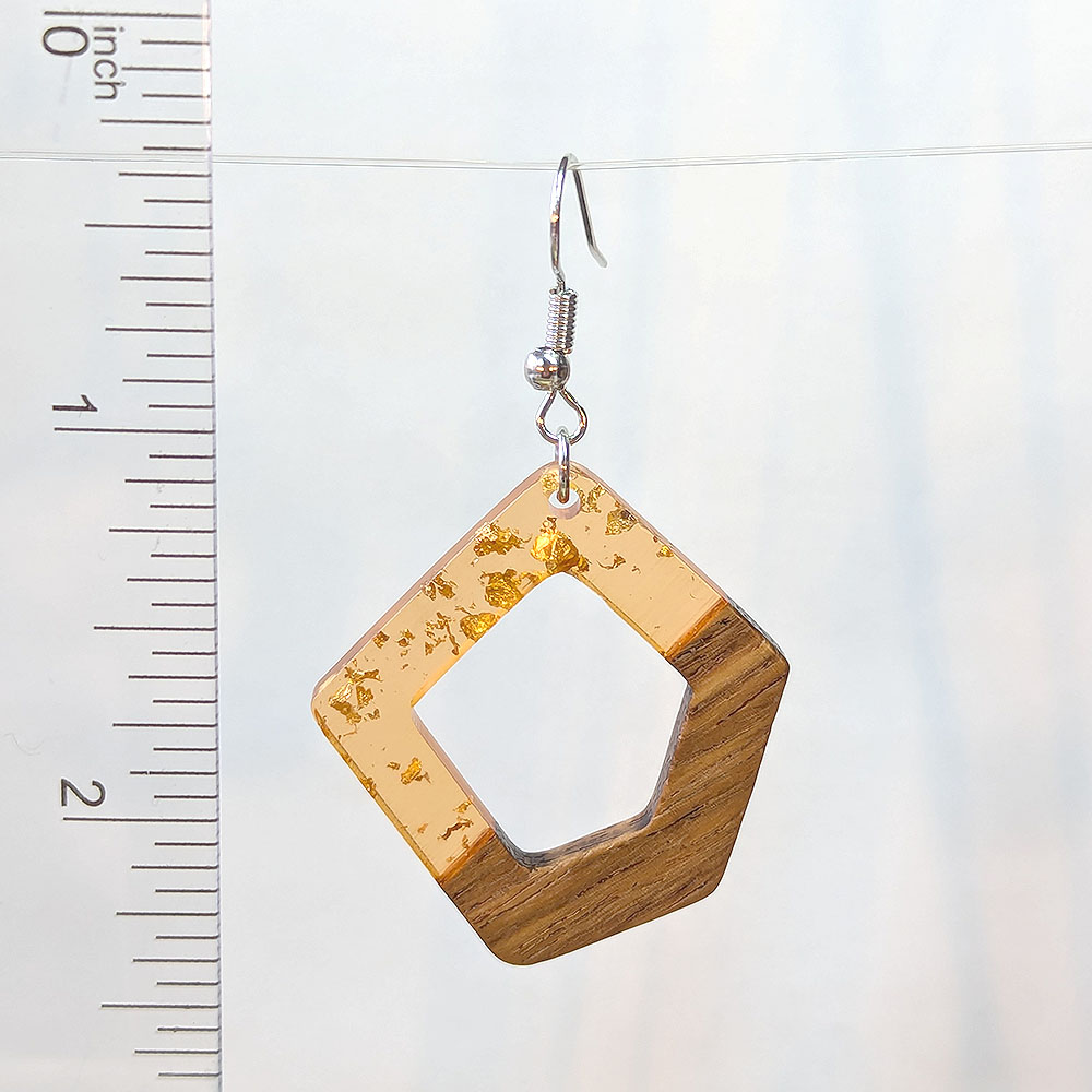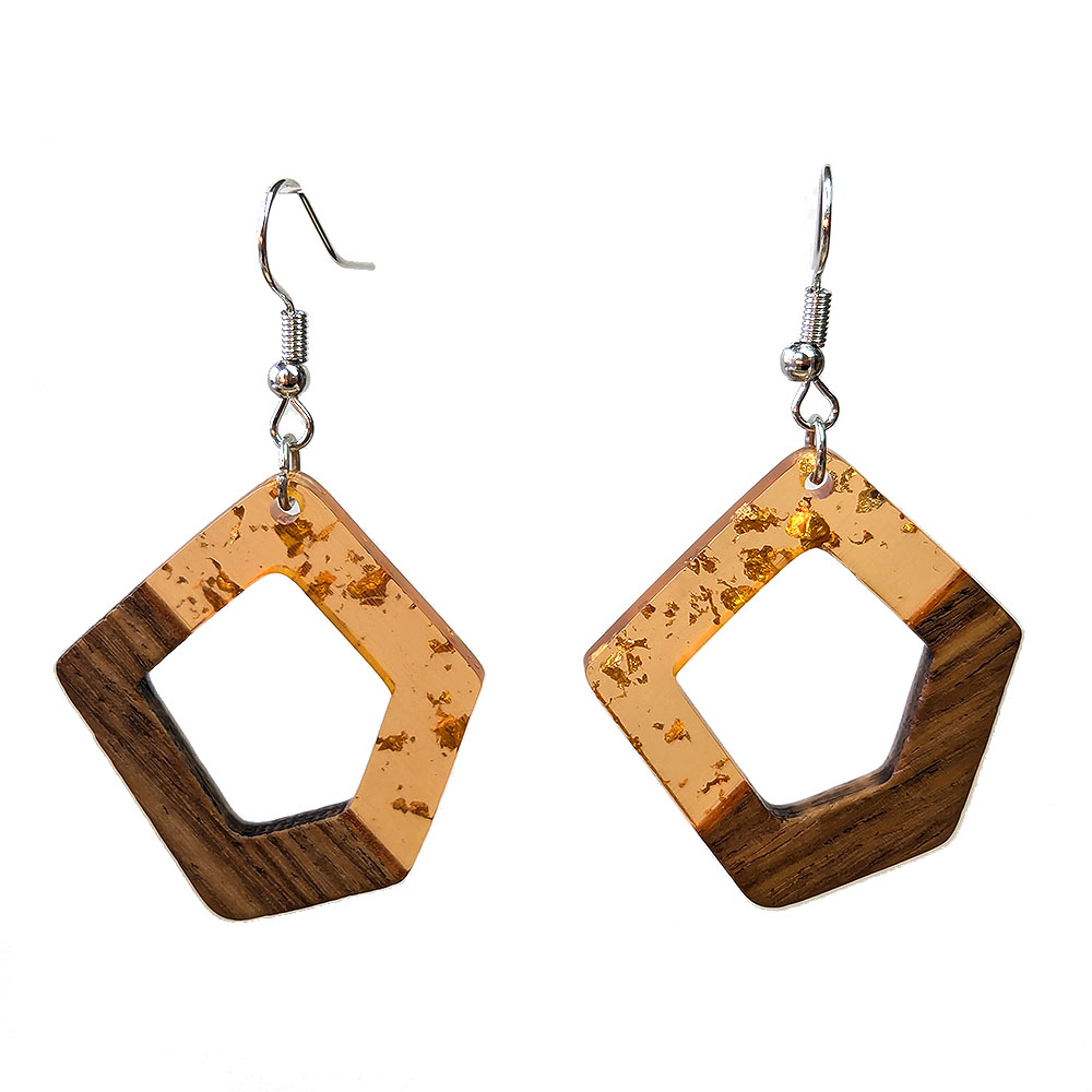Peach Gold Leaf Resin Wood Hollow Irregular Diamond Earrings