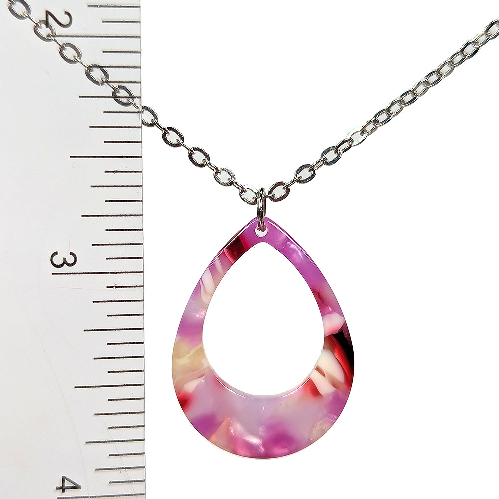 Pink Purple White Double Teardrop Resin Acrylic Necklace