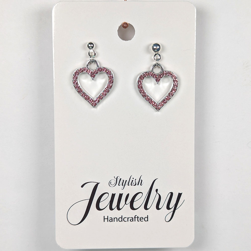 Pink Rhinestone Hollow Heart Silver Earrings