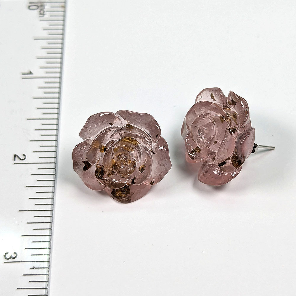 Purple Flower Gold Leaf Resin Stud Large Post Earrings