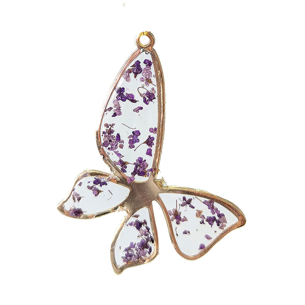 Purple Real Dried Flowers Butterfly Resin Pendant Gold
