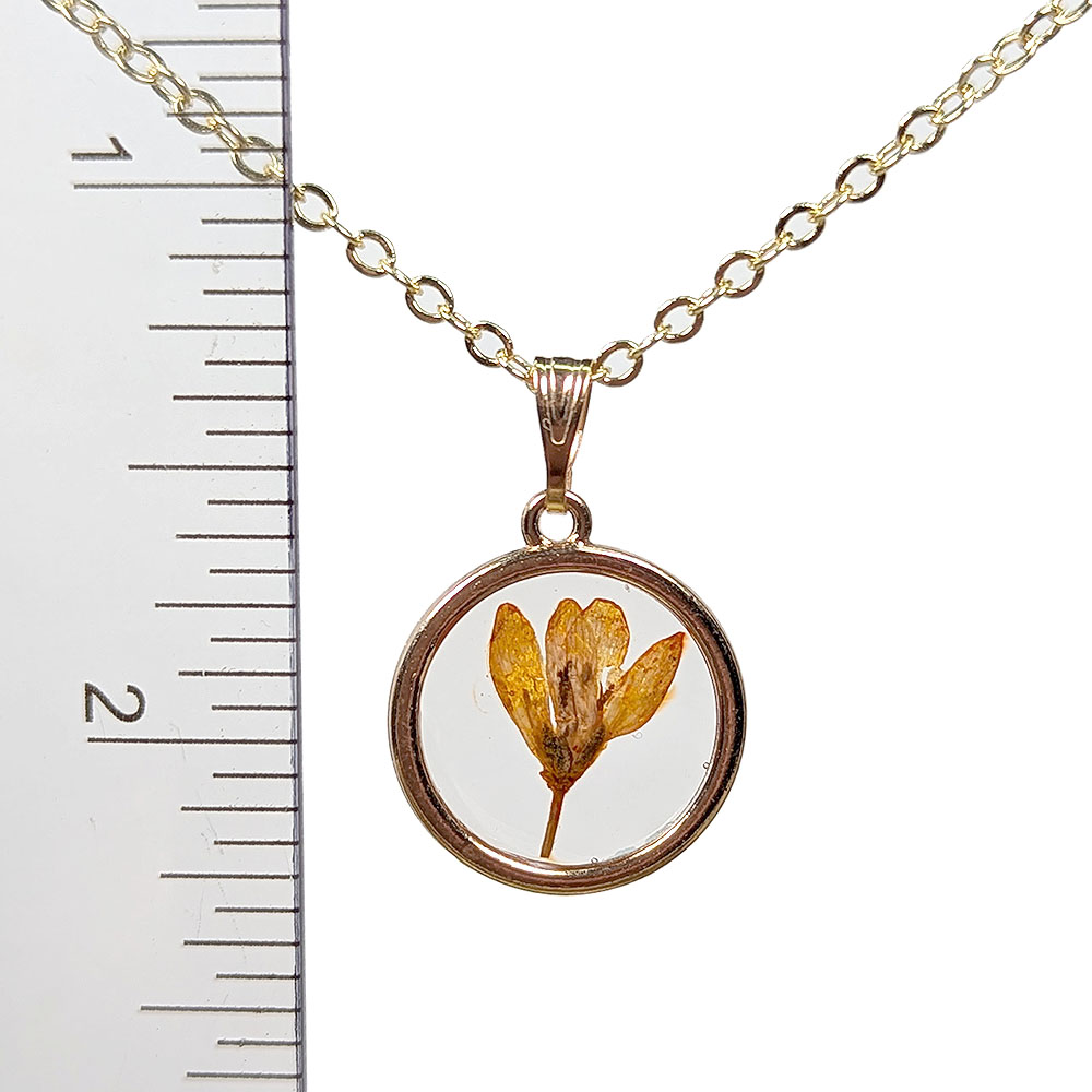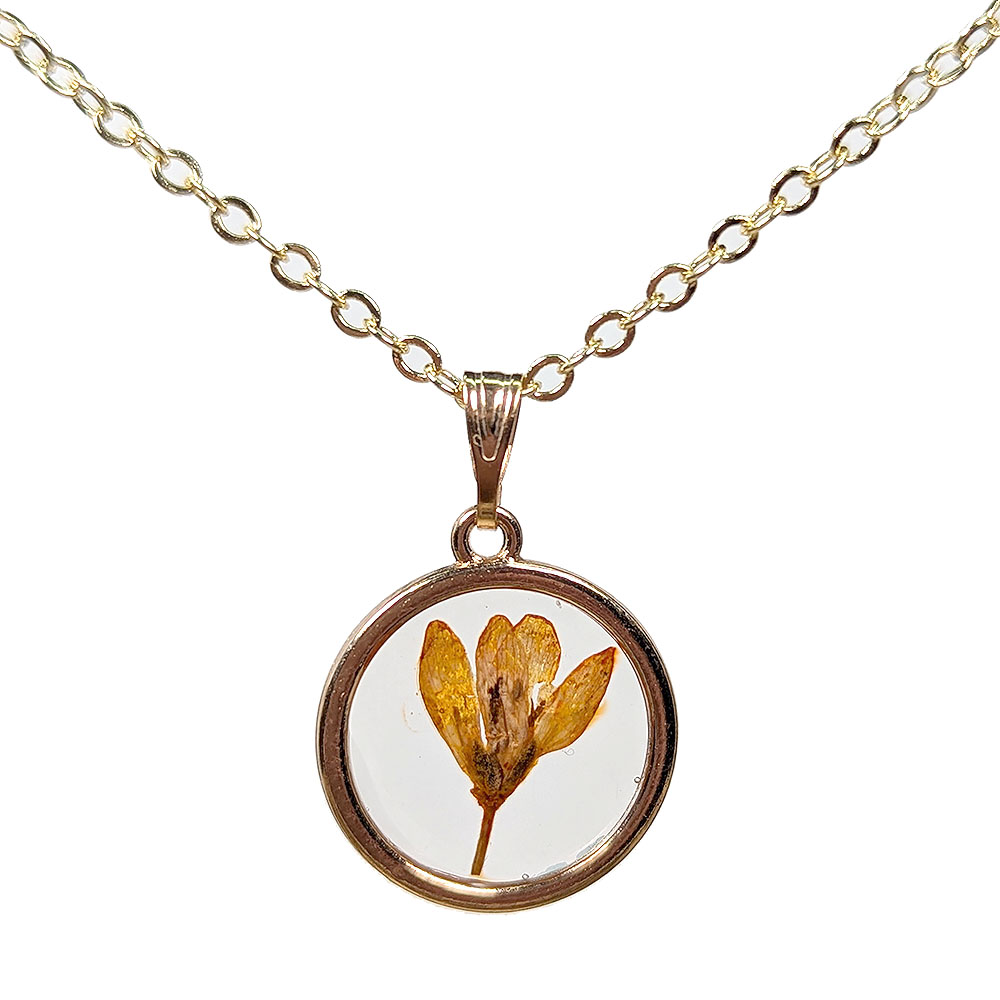 Real Dried Orange Flower Resin Round Necklace Gold