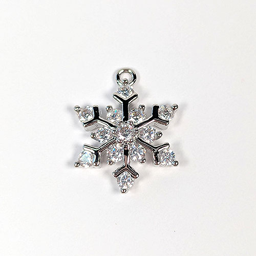 Real Platinum Plated Cubic Zirconia Rhinestone Snowflake Silver Charm
