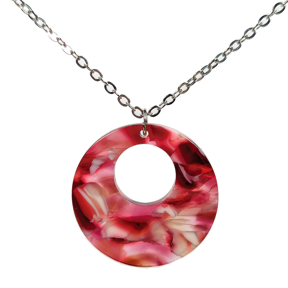 Red Double Round Resin Acrylic Necklace