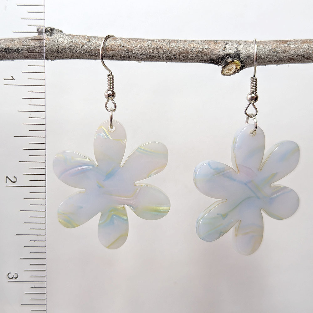 Resin Acetate Large Light Blue Daisy Flower Earrings