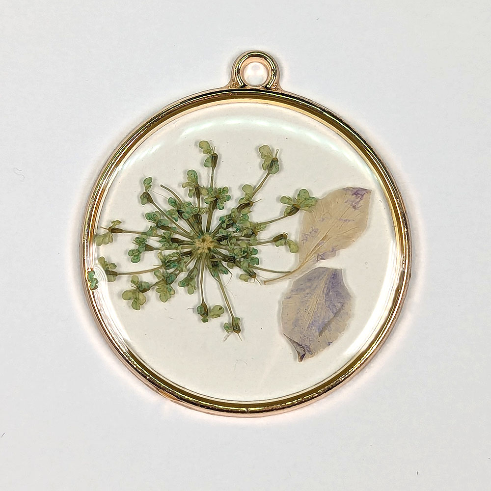 Round Green Real Dried White Flower Petals Pendant