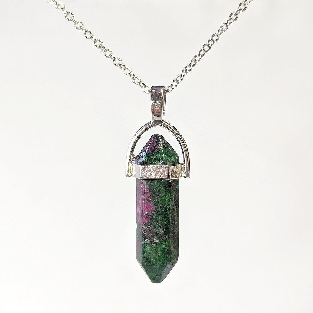Ruby Zoisite Gemstone Hexagonal Pointed Necklace