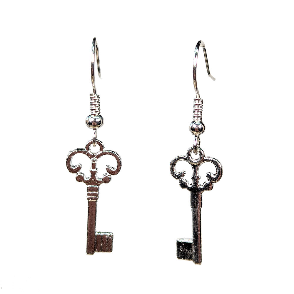 Silver Rounded Top Key Earrings