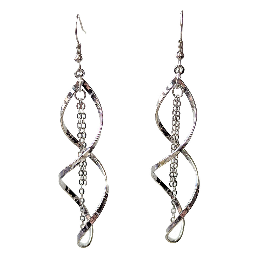 Silver Spiral Twist With Chain Earrings