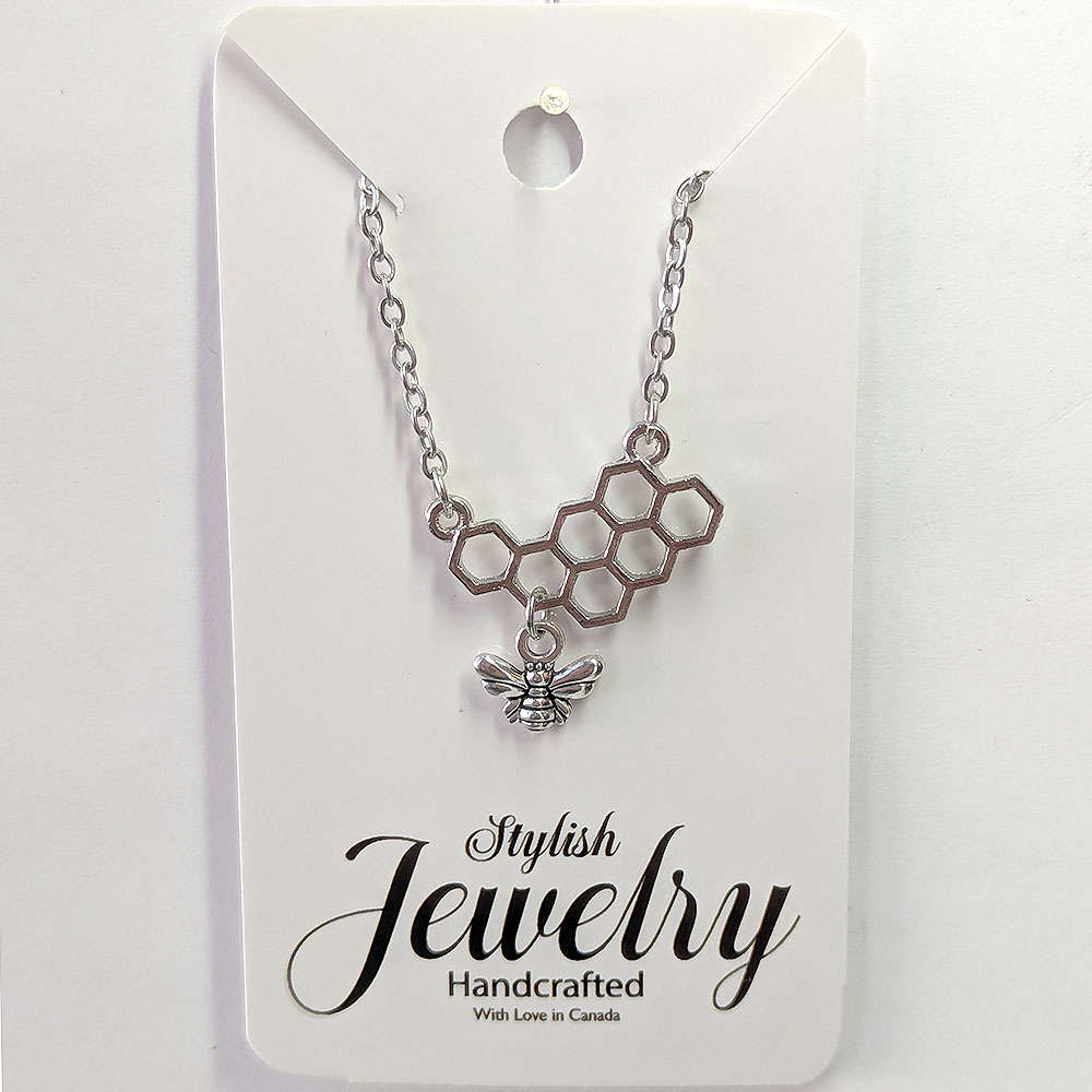 Small Bee with Hive Comb Silver Necklace
