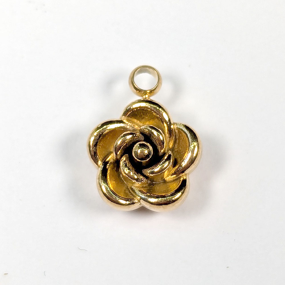 Stainless Steel 3D Rose Flower Charm Gold