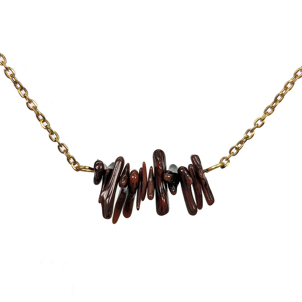 Stainless Steel Brown Coral Gemstone Chunks Necklace