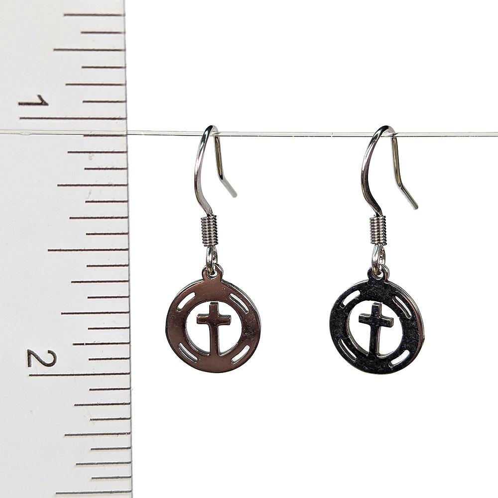 Stainless Steel Delicate Cross Hoop Silver Earrings