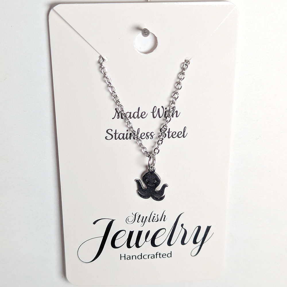 Stainless Steel Delicate Solid Octopus Silver Necklace