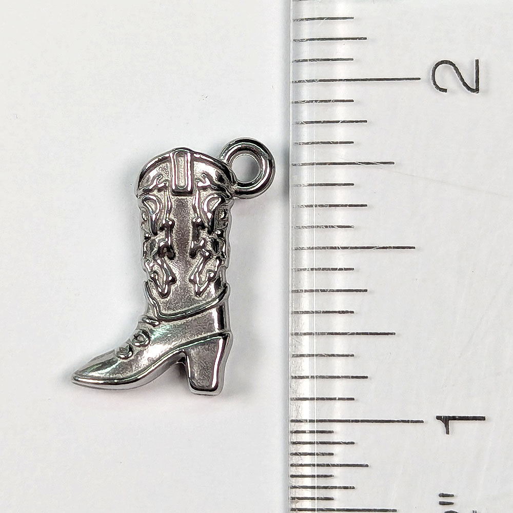 Stainless Steel Double Sided Cowboy Cowgirl Boot Charms Silver