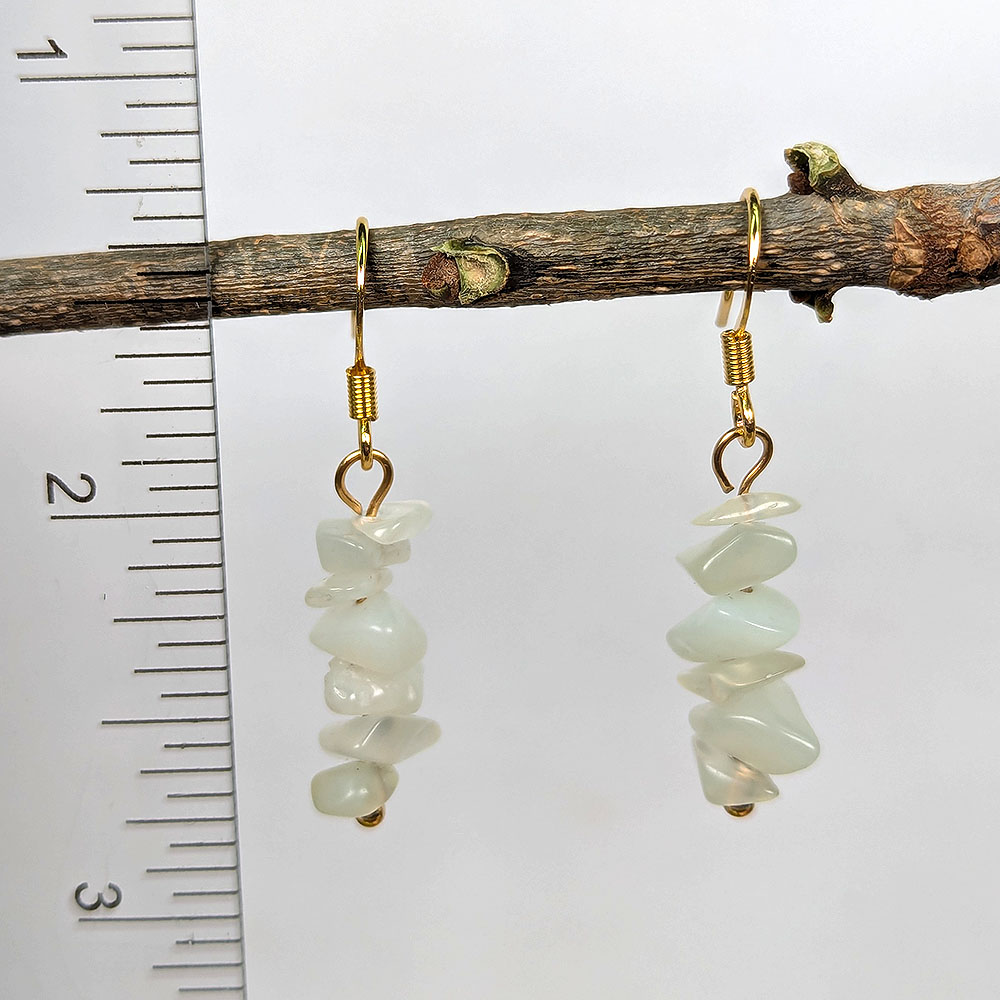 Stainless Steel Green Jade Gemstone Chips Earrings