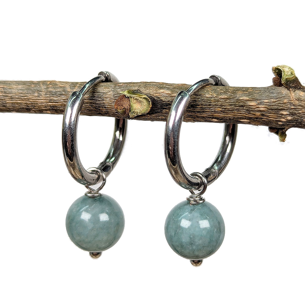 Stainless Steel Huggie Hoop Burmese Jade Gemstone Chips Earrings