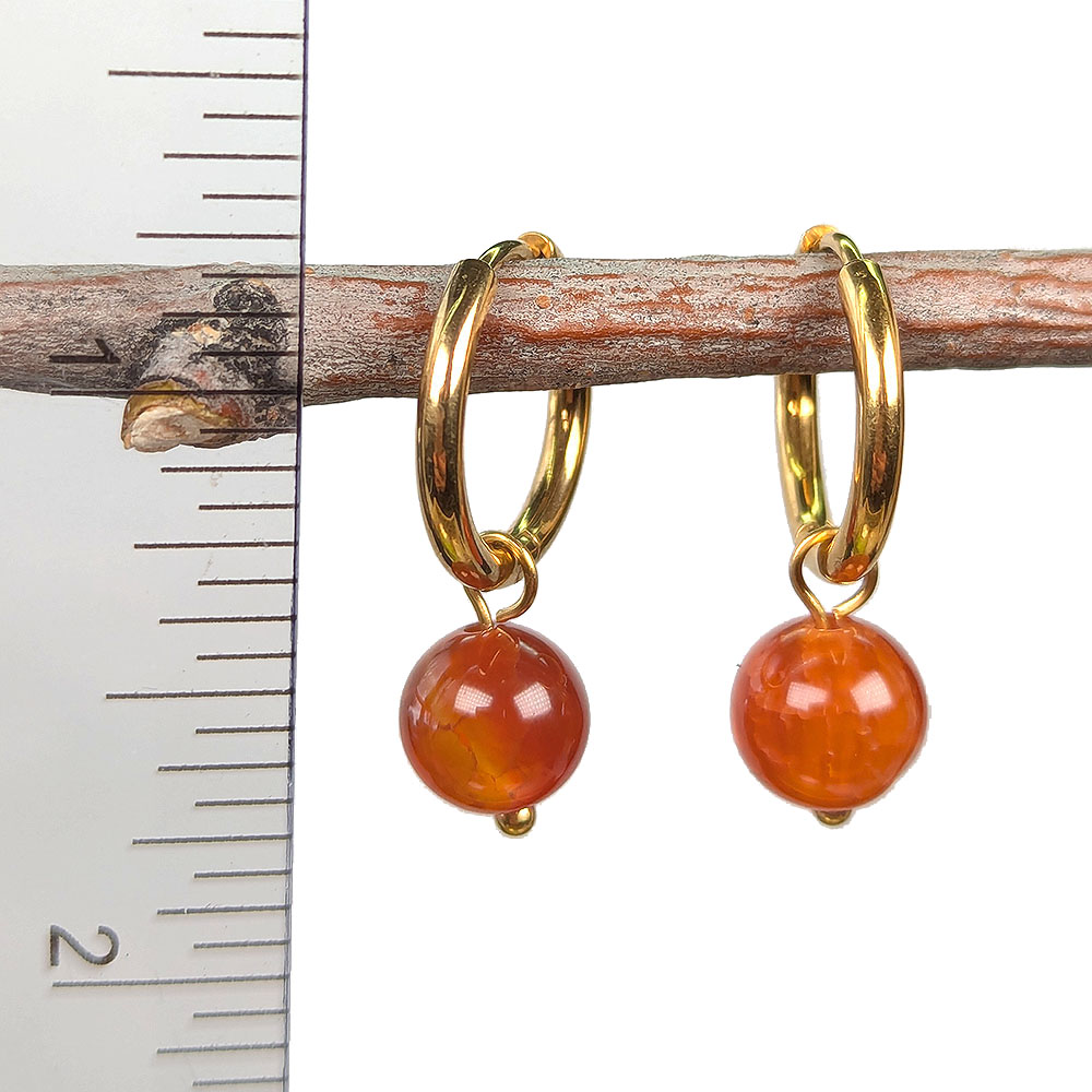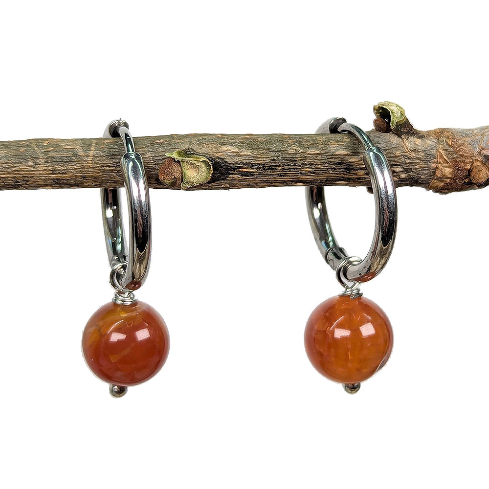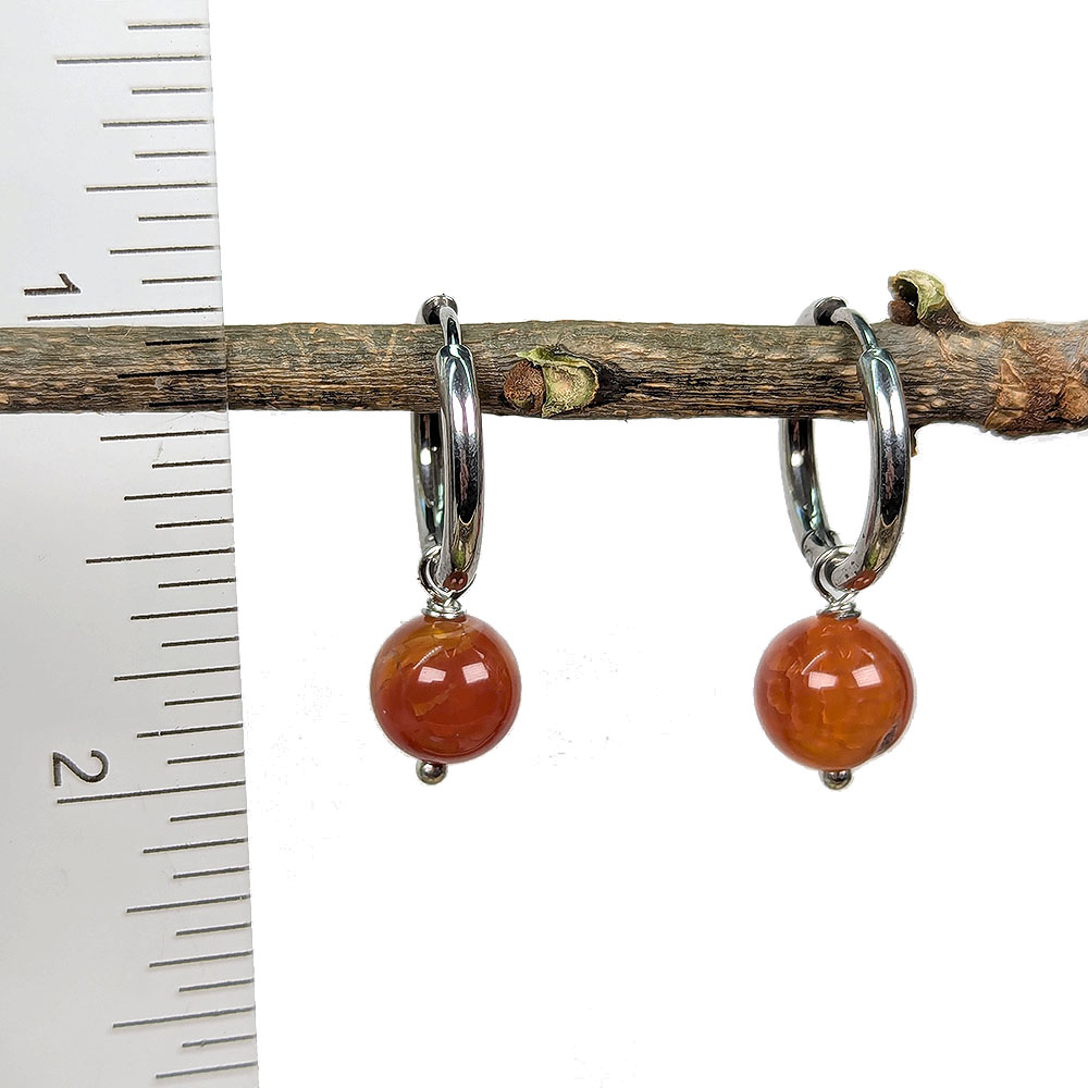 Stainless Steel Huggie Hoop Carnelian 8mm Gemstone Earrings