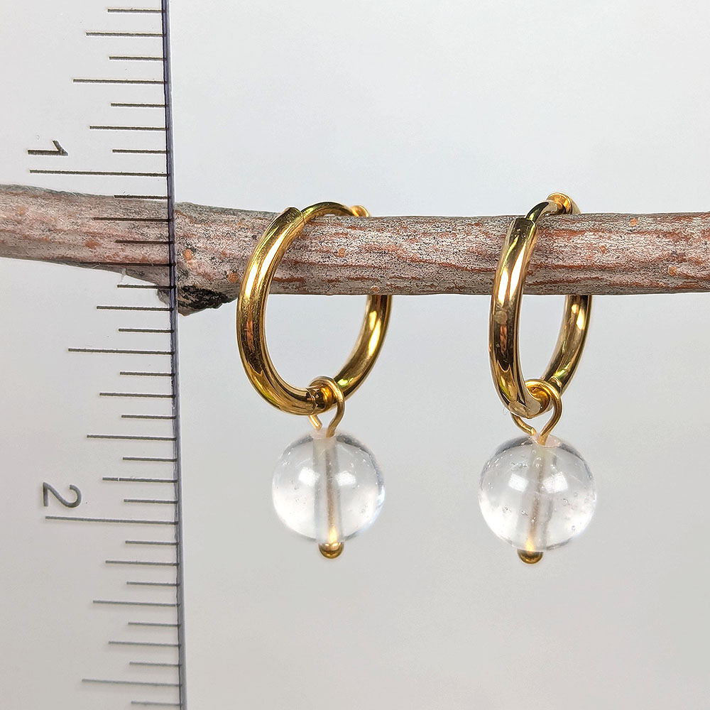 Stainless Steel Huggie Hoop Clear Quartz 8mm Gemstone Earrings