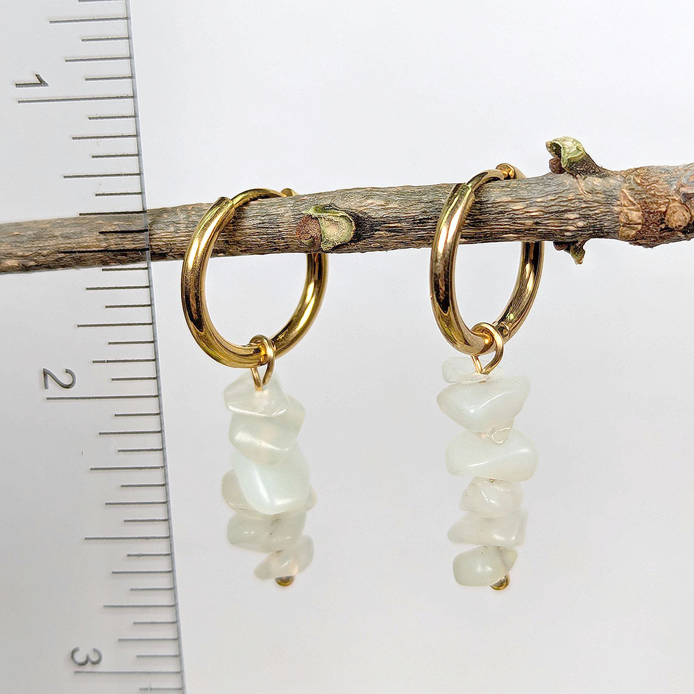 Stainless Steel Huggie Hoop Green Jade Gemstone Chips Earrings