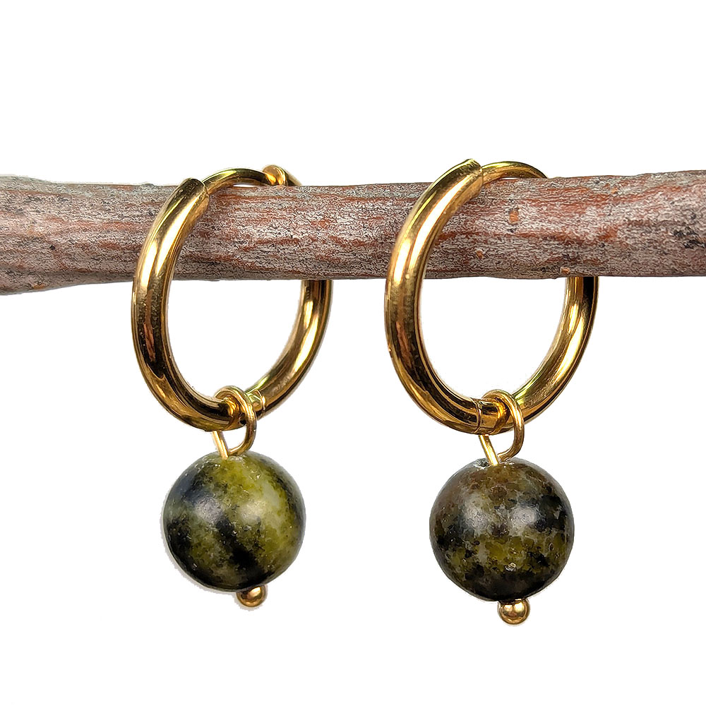 Stainless Steel Huggie Hoop Serpentine 8mm Gemstone Earrings