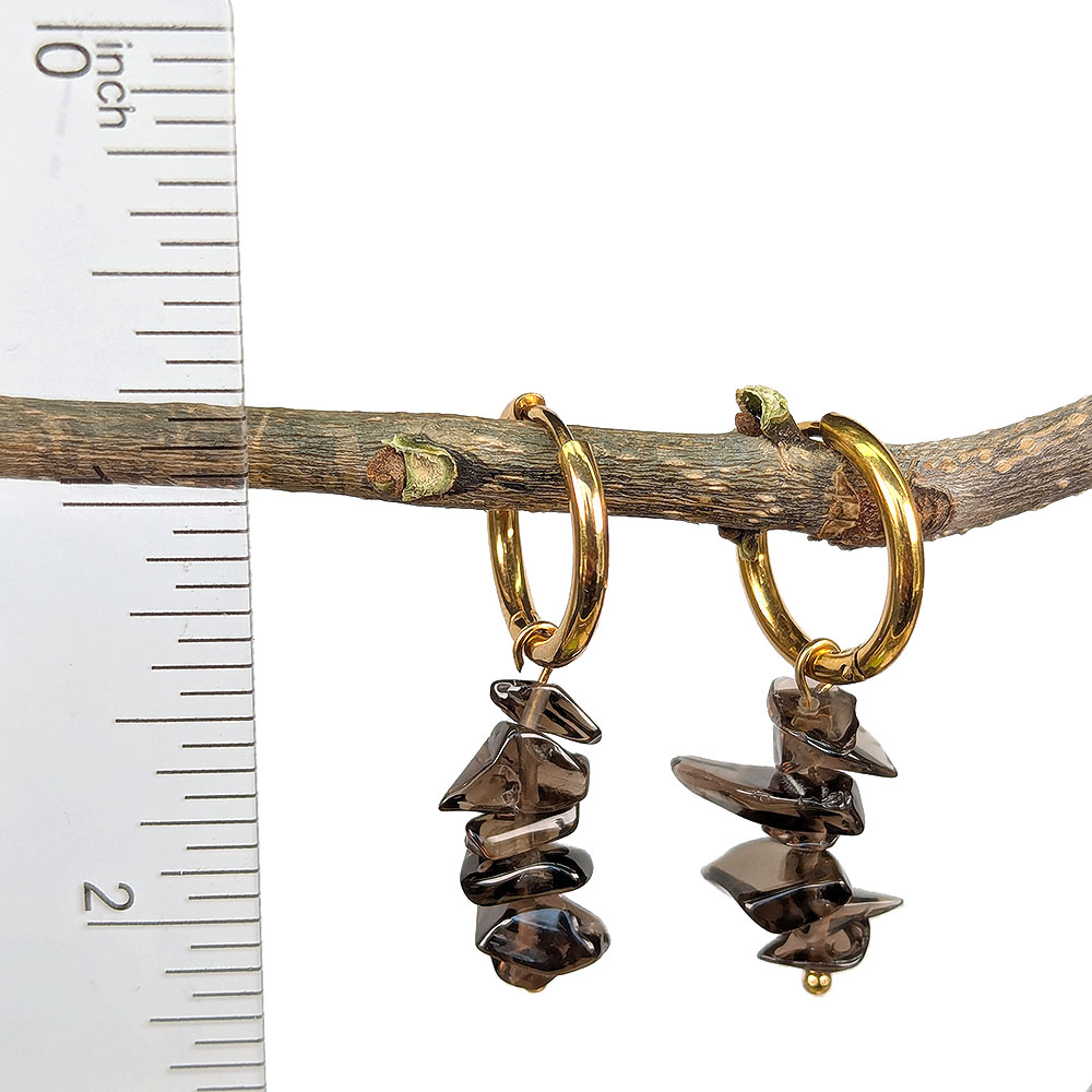 Stainless Steel Huggie Hoop Smoky Quartz Gemstone Chips Earrings