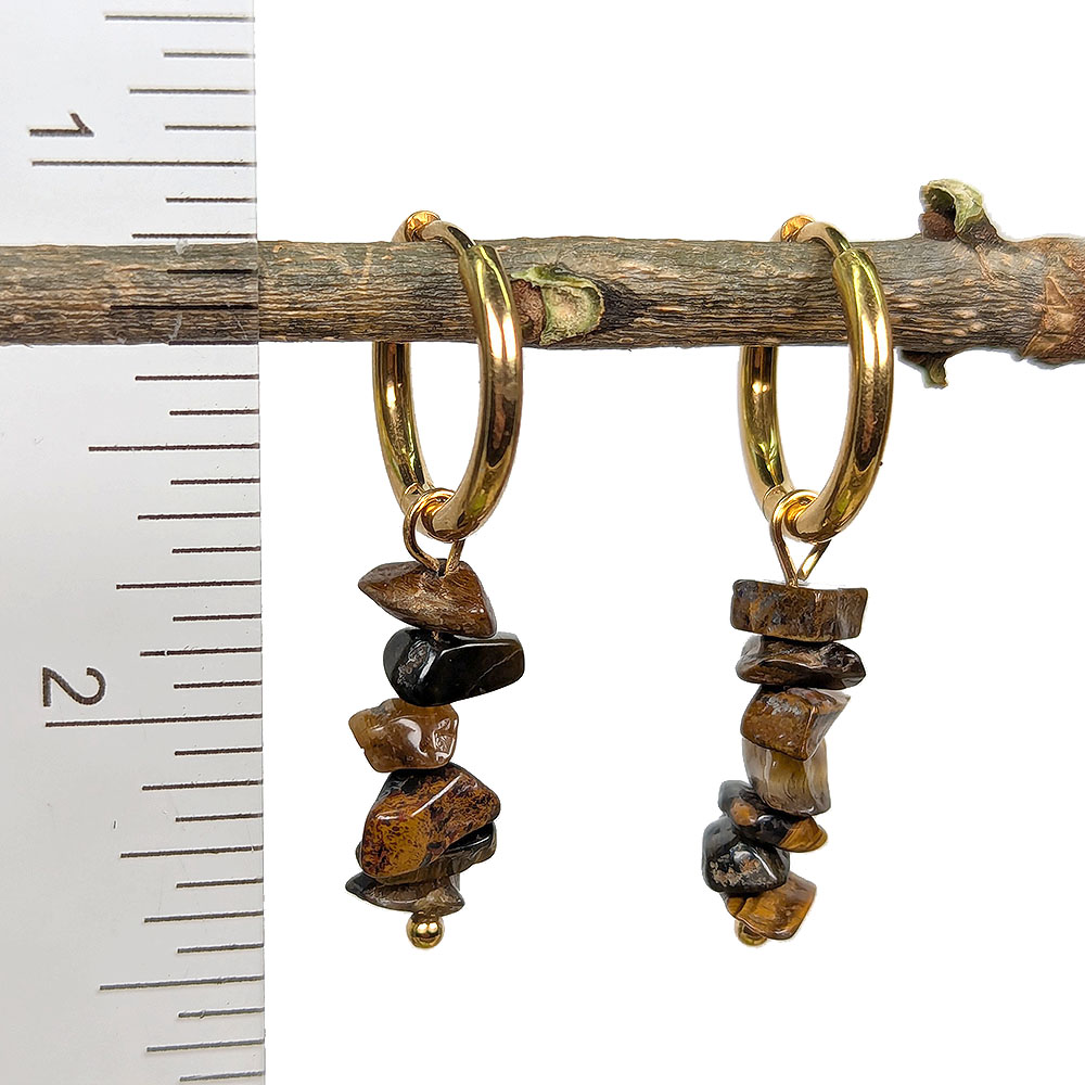 Stainless Steel Huggie Hoop Tiger’s Eye Gemstone Chips Earrings