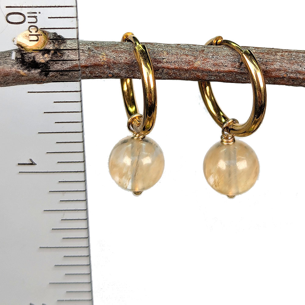 Stainless Steel Huggie Hoop Yellow Citrine 8mm Gemstone Earrings