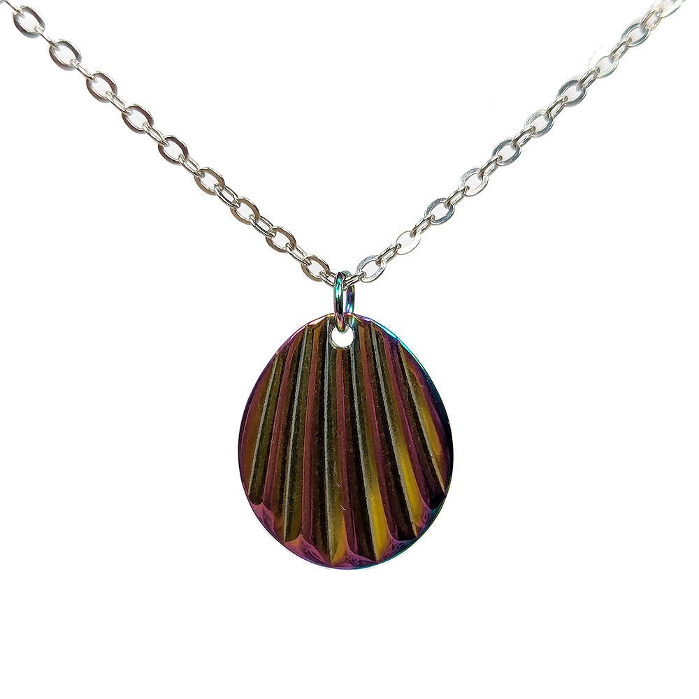 Stainless Steel Rainbow Wave Teardrop Oval Necklace