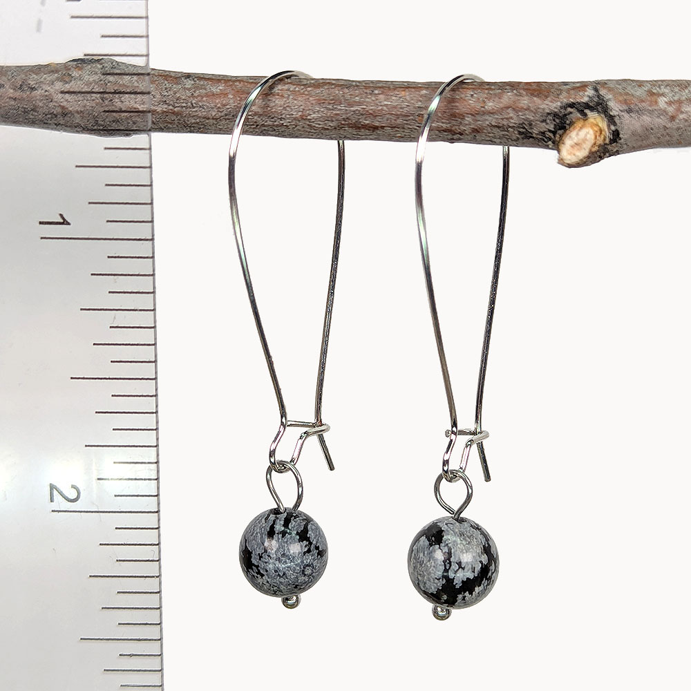 Stainless Steel Snowflake Obsidian 8mm Gemstone Earrings