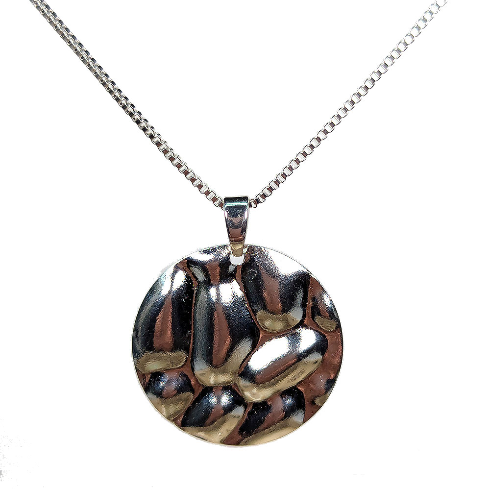Round Hammered – Aprox 0.75″ – Sterling silver plated.