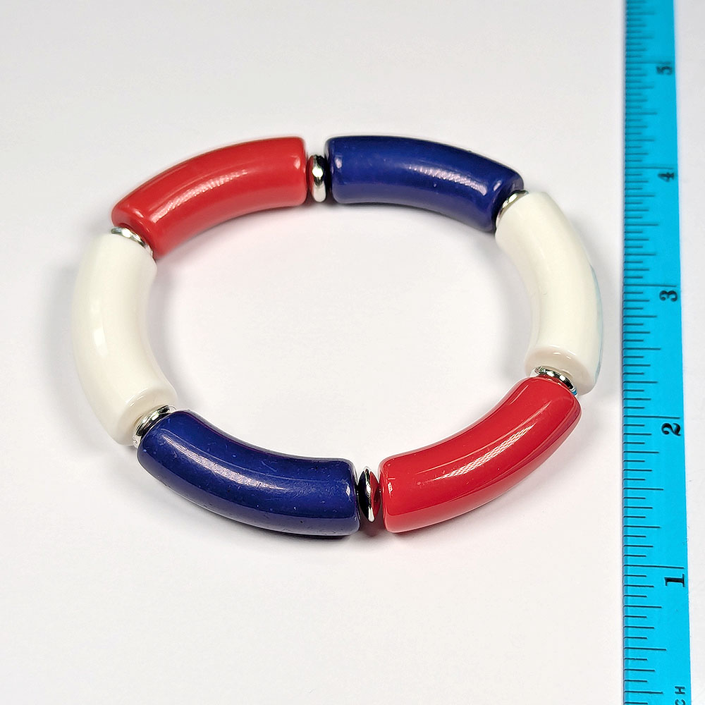White Navy Red Chunky Bamboo Slip-on Acrylic Bracelet